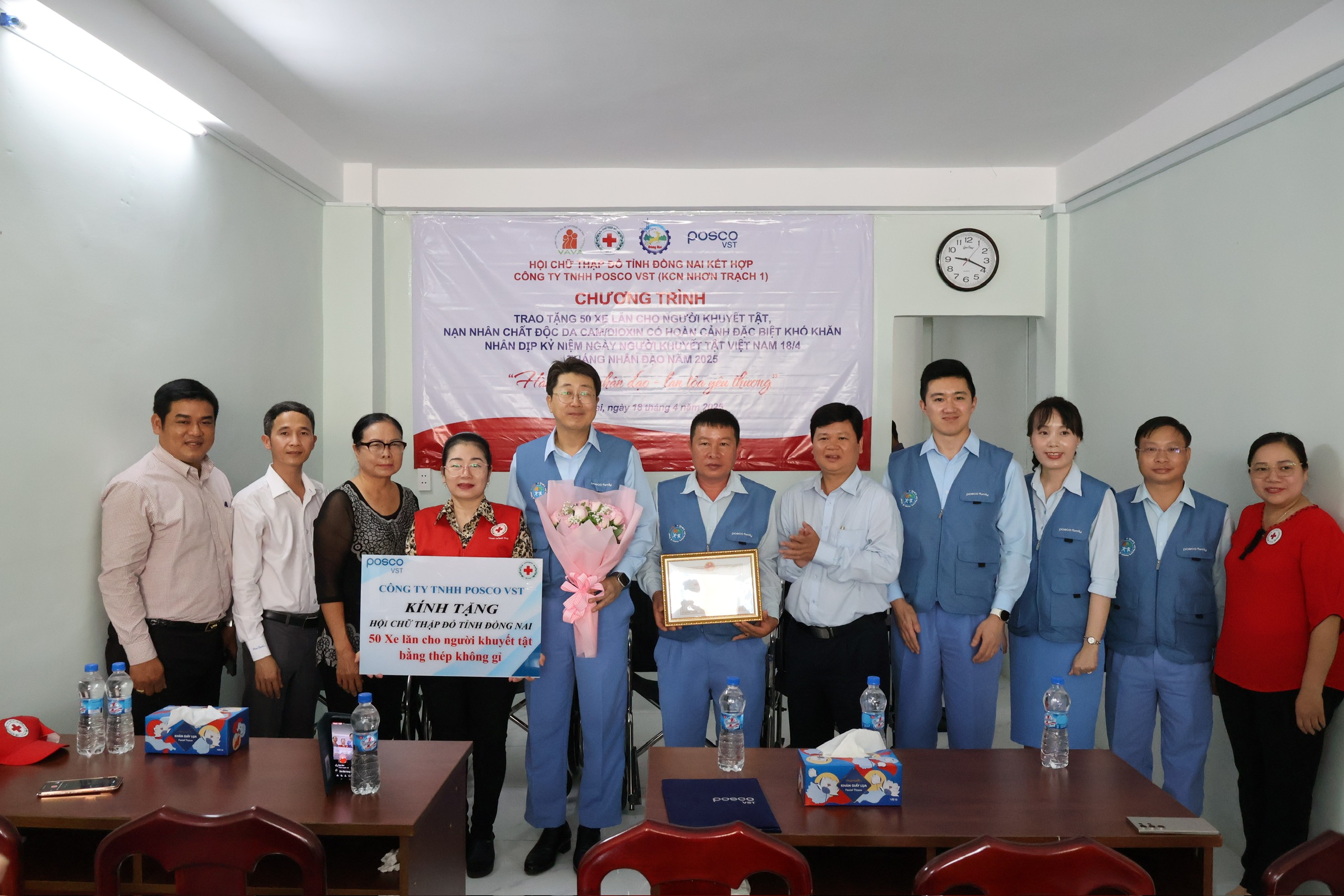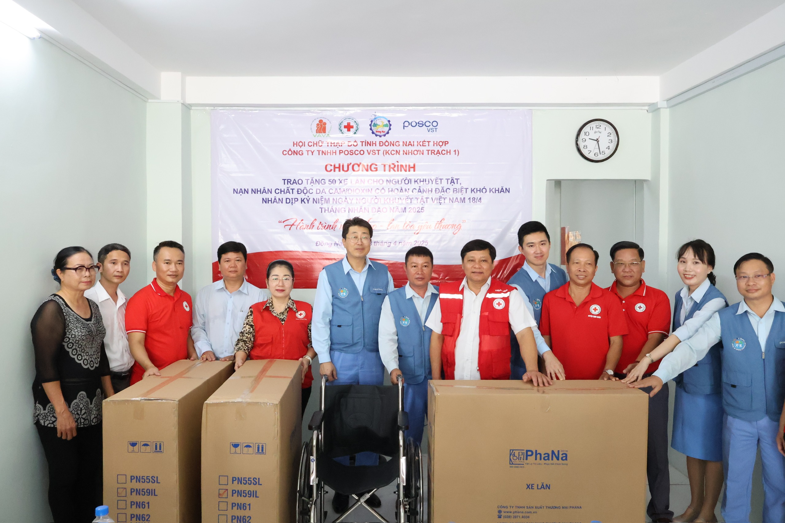Nhân Ngày Người Khuyết Tật Việt Nam 18/4, Công ty TNHH POSCO VST (Đồng Nai) đã thực hiện một nghĩa cử vô cùng ý nghĩa: trao tặng 50 chiếc xe lăn do Phana sản xuất và cung cấp đến tận tay những người khuyết tật là nạn nhân chất độc da cam/dioxin có hoàn cảnh khó khăn.