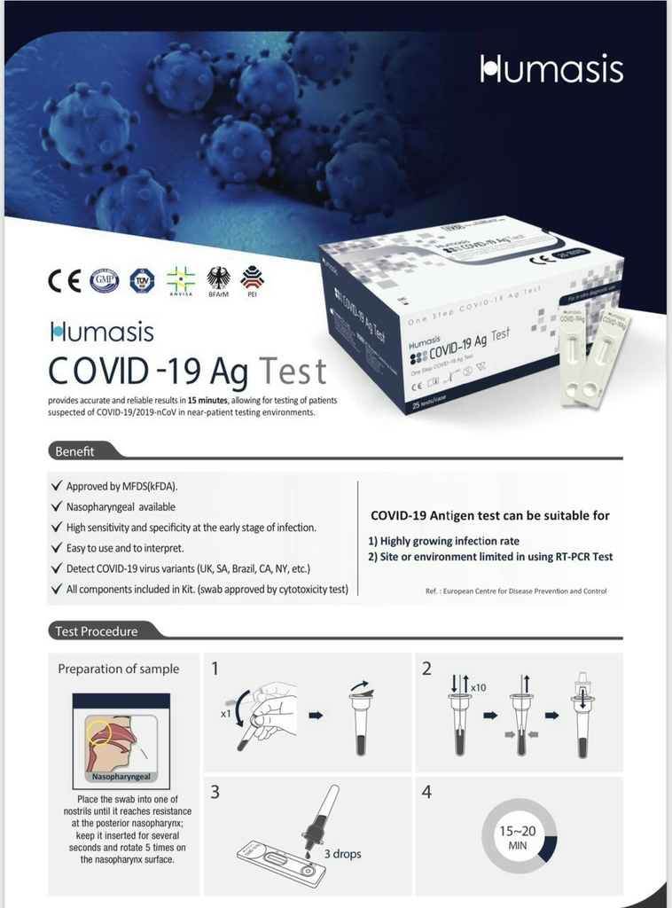 Bộ test nhanh COVID-19 Ag Humasis Hàn Quốc