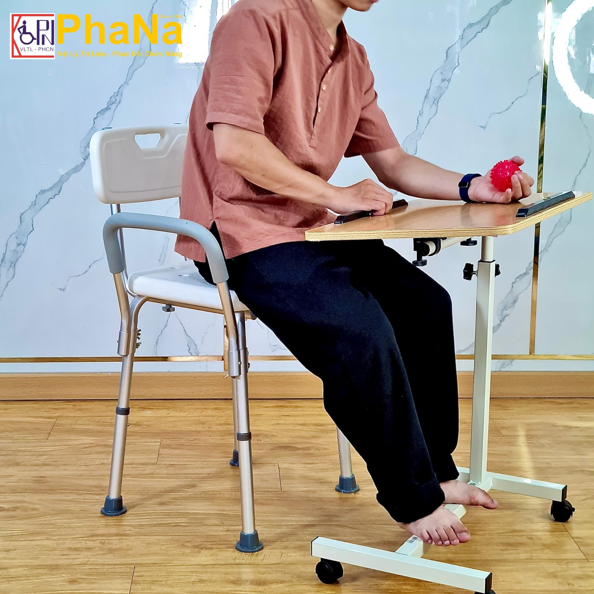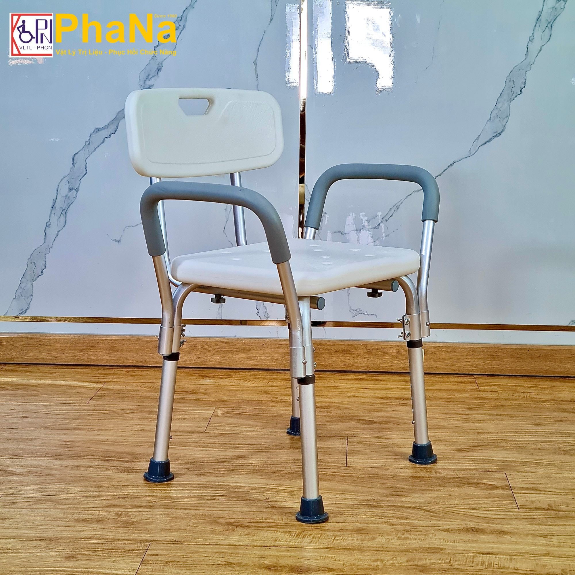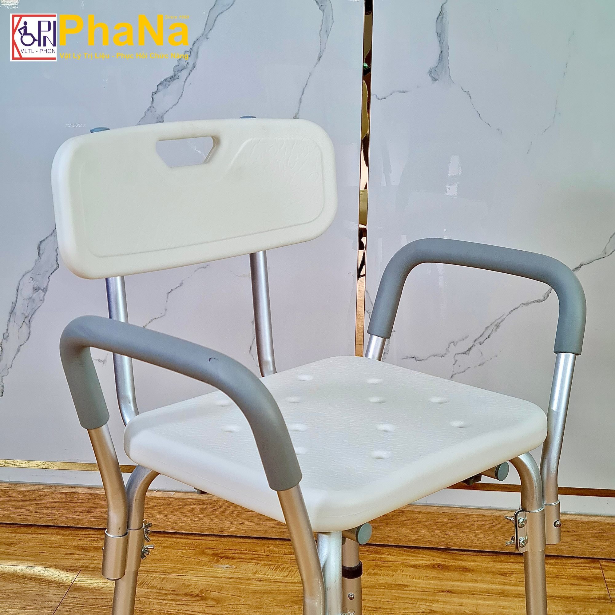 - Ghế tắm khung nhôm có tựa lưng và tay vịn.