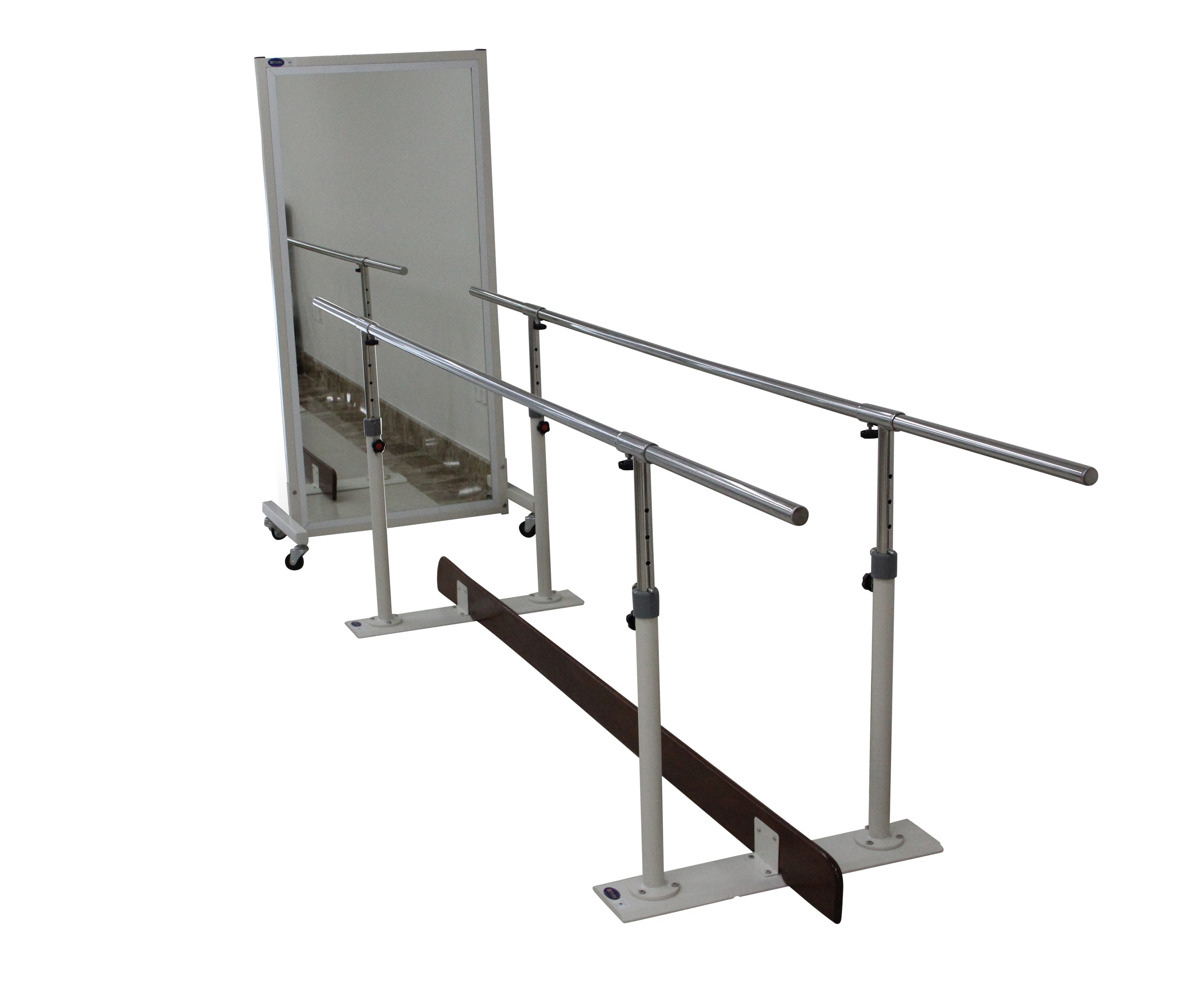 Khung tập đi song song là dụng cụ không thể thiếu trong các phòng tập Phục hồi chức năng , là dụng cụ hỗ trợ rất quan trọng cho người bị yếu liệt chi đưới trong giai đoạn đầu tập đi và tập luyện dáng đi .