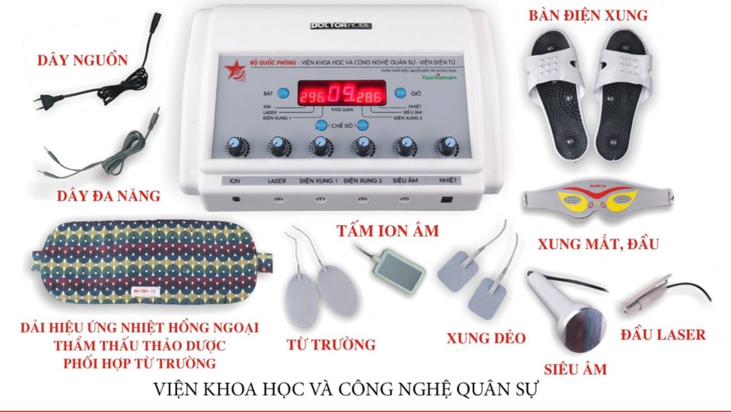 Máy vật lí trị liệu đa năngmodel DH14 do(thuộc Viện Khoa học và Công nghệ QS - BQP) nghiên cứu và sản xuất, đã được Bộ Y tế cấp phép sản xuất, lưu hành máy số, đã được áp dụng điều trị và thanh toán Bảo hiểm y tế tại nhiều bệnh viện trong toàn quốc.