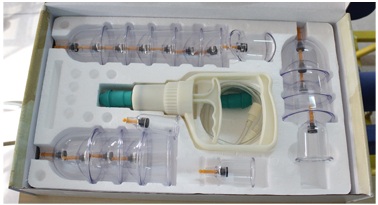 Sản phẩm được bọc hộp giấy gồm bơm hút hơi, dây nối dài từ bơm đến các ly, 18ly có nhiều kích cở khác nhau, trong đó có 2 loại miệng ly thẳng và miệng ly cong để có thể giác tại các vùng da lồi lõm - uống cong.