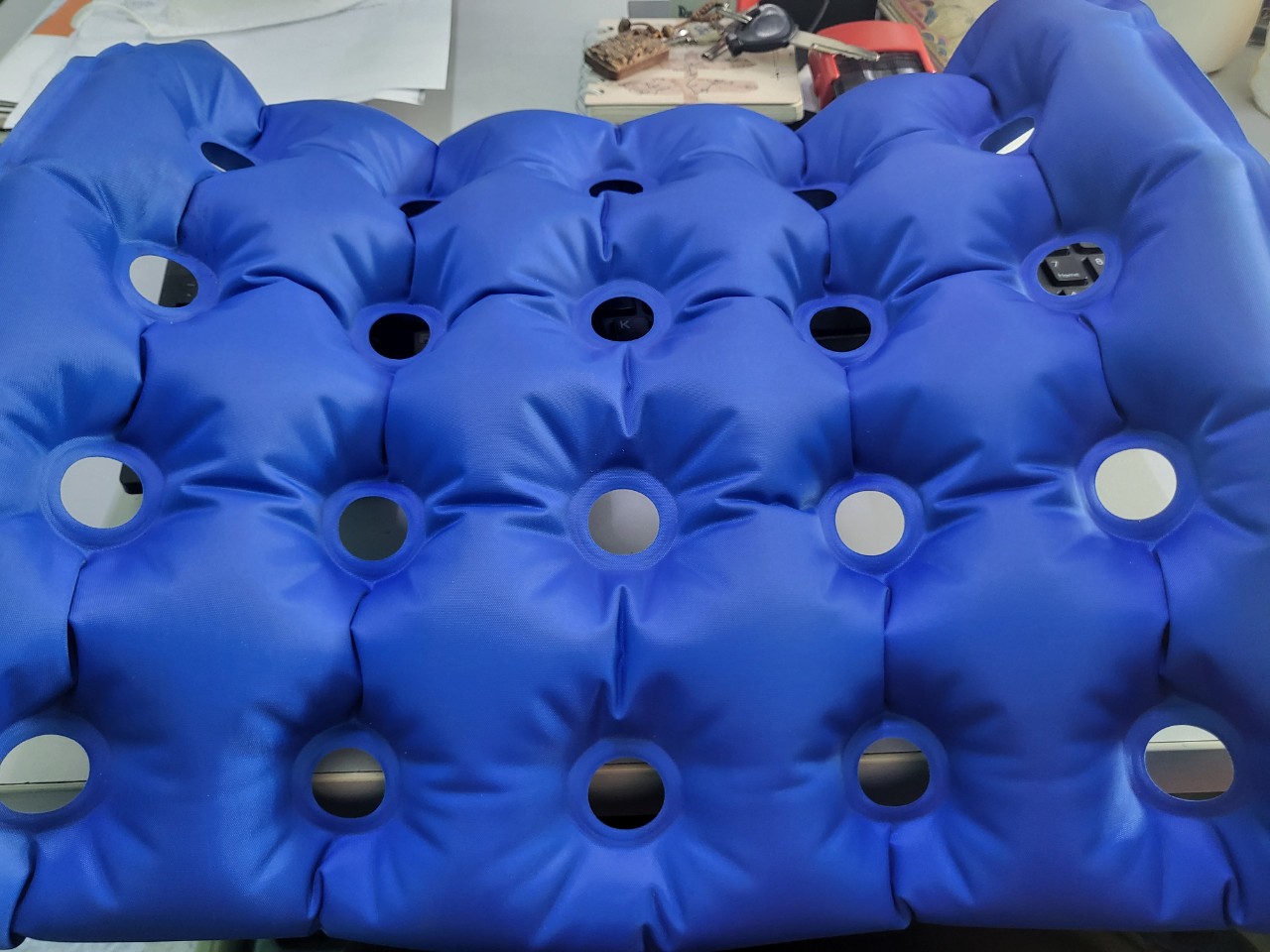 Đệm hơi sạch được vệ sinh trực tiếp bằng chất tẩy rửa trung tính và làm khô. Ngăn không cho vật sắc nhọn đâm vào đệm hơi.