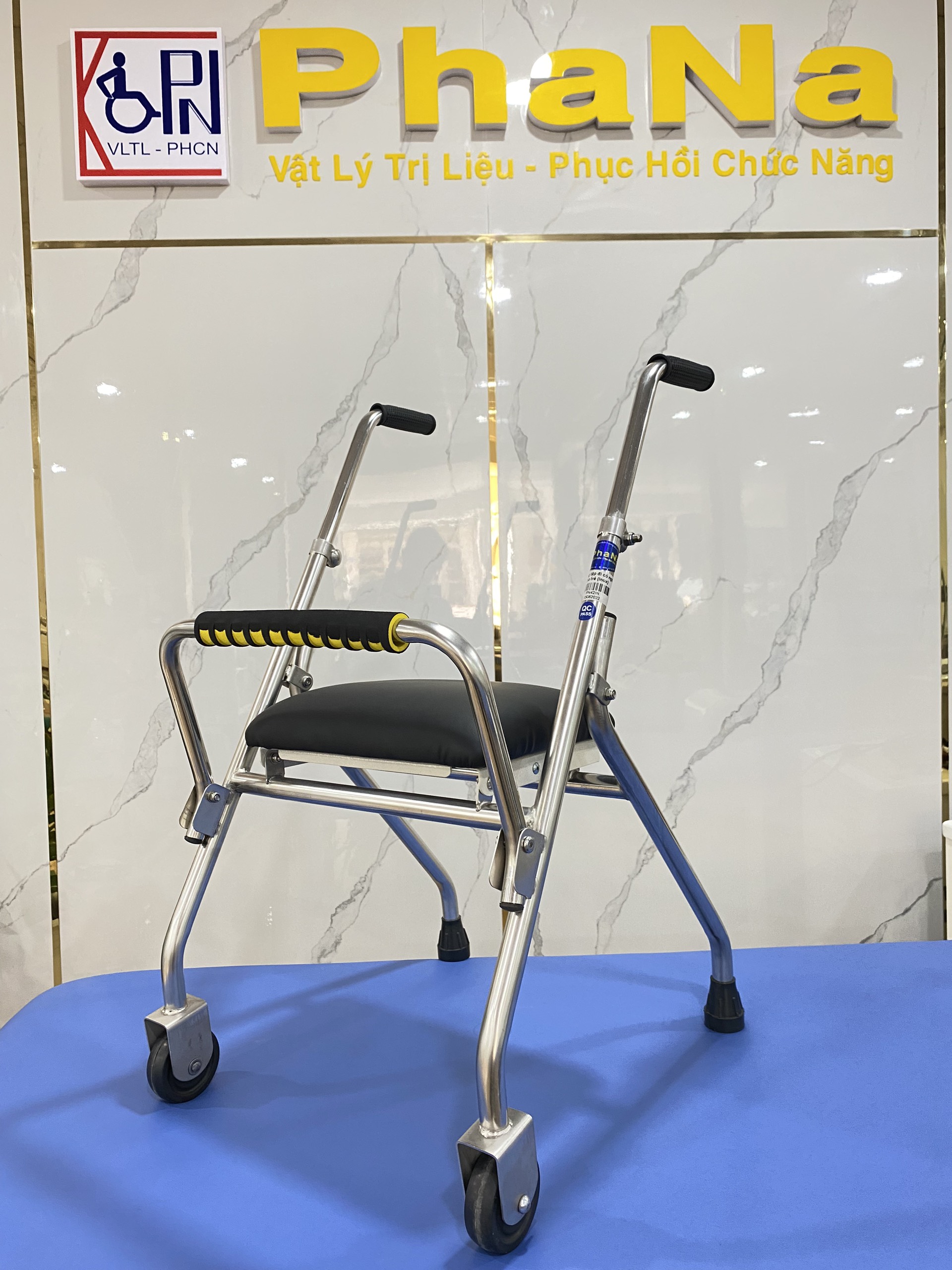 - Dùng để tập đi, có chỗ ngồi giúp người bệnh có thể ngồi nghỉ tạm khi đang tập đi bị mệt cần ngồi nghỉ tại chỗ. Có thể xếp gọn