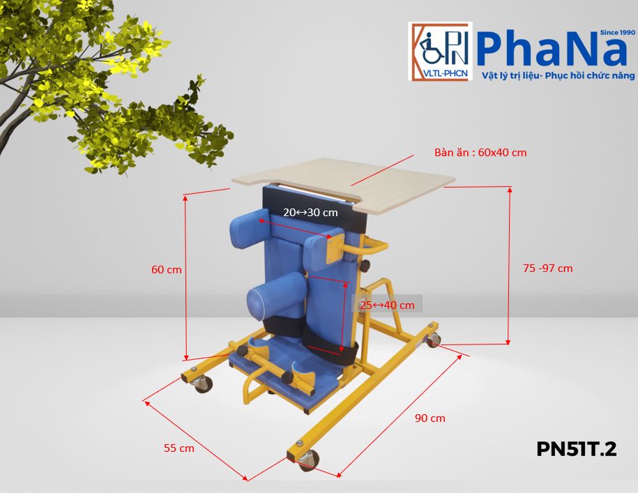 PN51T.2 Khung tập đứng sấp trẻ khuyết tật thấp có ụ ngồi