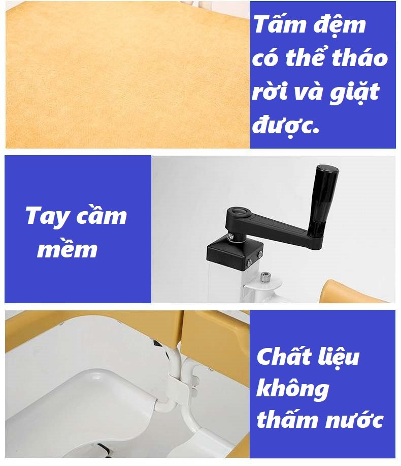 4. Điều chỉnh được chiều cao của ghế, từ đó phù hợp với các khu vực cần di chuyển có chiều cao khác nhau như bồn cầu, ghế, giường…