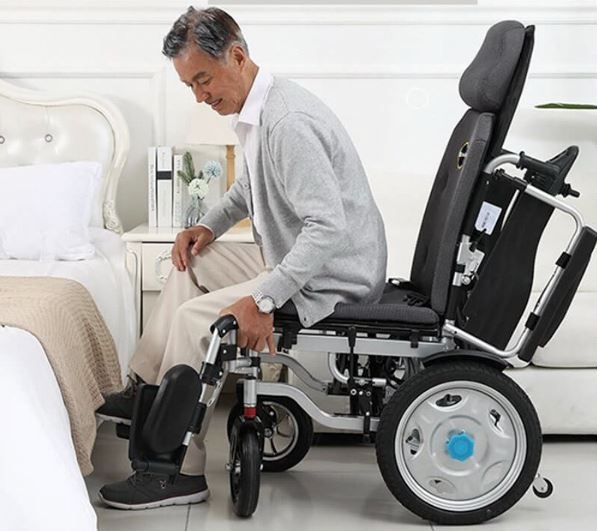 -Thiết kế nâng chân ngã lưng tự động thông minh: Ngoài khả năng di chuyển an toàn xe lăn điện đa năng S803 còn có 2 tính năng tự động đó là nâng ngã lưng bằng điều khiển cầm tay, và nâng hạ chân bằng remote. 2 tính năng nâng cao chân và ngả lưng ra sau kết hợp giúp cho người điều khiển xe lăn có thể ngã nằm ra sau nghỉ nghơi khi mệt mỏi. Mình có thể nâng hạ chân và lưng theo nhiều góc độ khác nhau bằng điều khiển cầm tay.